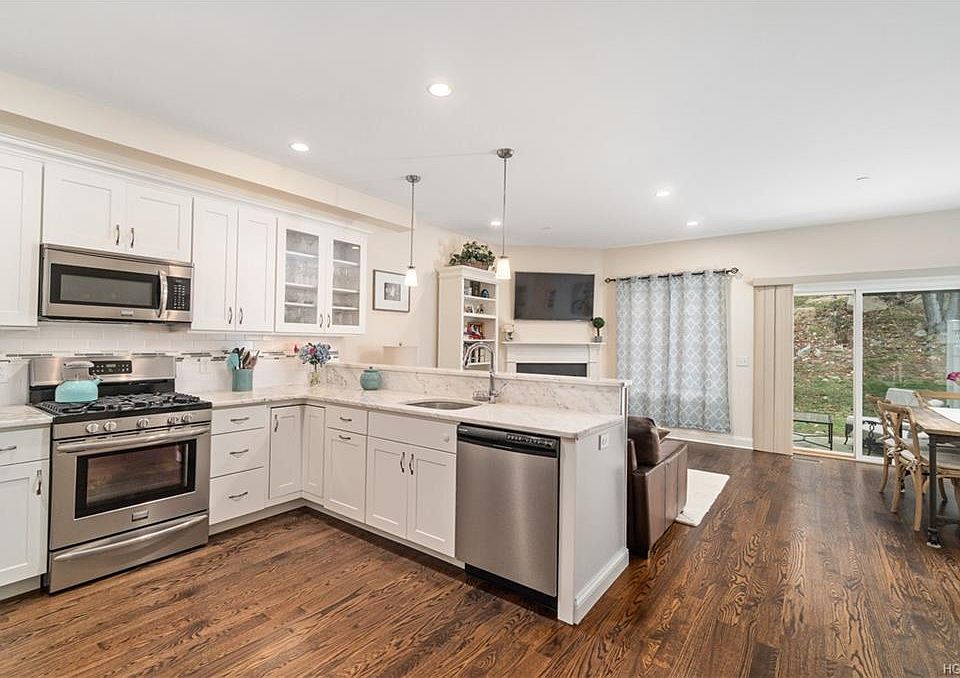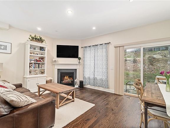 Welcome home to this beautiful townhouse in one of Westchester's newest developments. The main level boasts a living room with a gas fireplace, kitchen with granite counter tops and stainless steel appliances, powder room, and a den filled with sunshine. The second floor has a master with full bath with marble counter top and two spacious closets. There is a second bedroom and another full bathroom. Enjoy amenities including 2 pools,1 wade pool (kiddie pool), basketball & tennis courts with maintenance costs at only $243 mo. Taxes are only $6924 before the $1770 STAR exemption or the NYS Property Tax Relief. Walk to stores and restaurants located next door in Oakridge Common Shopping Plaza. Close to Merritt or to train, and less than one hour to NYC.