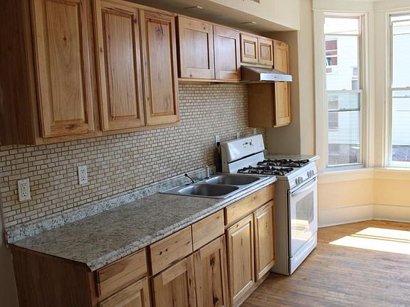 Spacious and full of charm, this bright 4-bedroom, 1-bathroom second-floor apartment offers comfortable living with vinyl flooring throughout. The sun-drenched living room flows into a large eat-in kitchen-perfect for gatherings and everyday meals. A cozy bathroom adds a touch of warmth and function. Each bedroom features colorful tile carpeting for a unique and inviting touch, while one bedroom includes a private closet and three additional closets are conveniently located in the hallway. Enjoy relaxing evenings on the back porch overlooking a shared backyard. Washer and dryer hookups are available for your convenience.