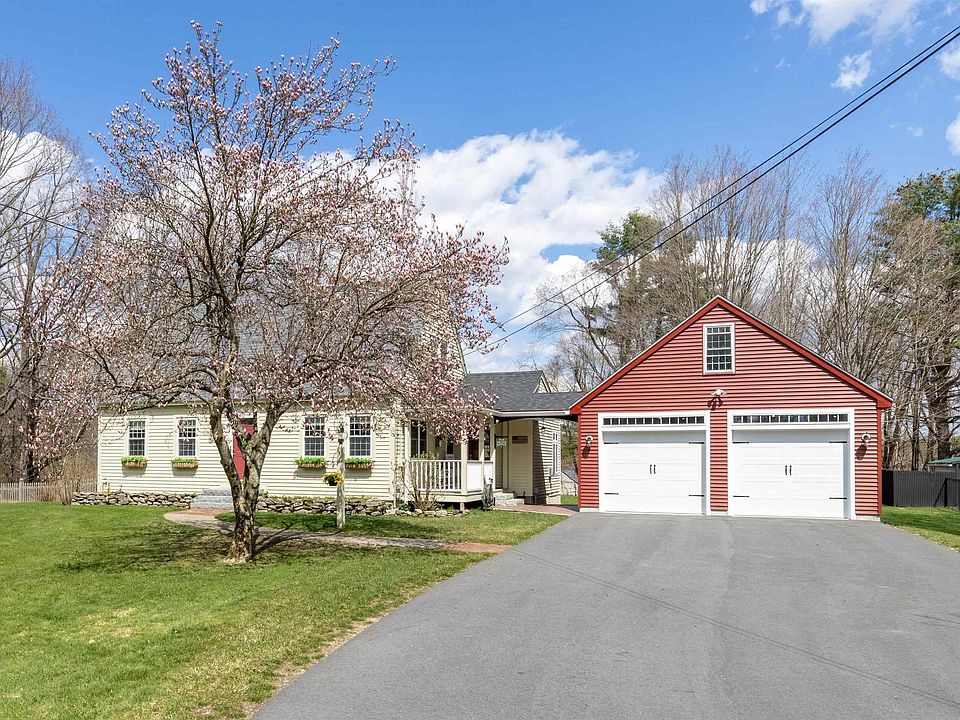 Lovingly cared for & flawlessly updated throughout the years, this charming nature lovers Cape offers a perfect blend of classic architecture & modern updates. Step inside to discover a beautifully updated kitchen, complete w/ SS appliances, newer countertops & ample cabinet space. The open concept kitchen/dining room is great for entertaining. Rounding out the first floor is a living room w/ gas fireplace & bedroom(closet has been removed, can be easily reinstalled). Upstairs you will find 2 additional front to back bdrms w/ updated bath & soaking tub offering another view of the amazing backyard. Explore further, you will be captivated by the inviting sunroom, where natural light pours in, creating a cozy relaxing atmosphere. Imagine starting the day w/ a cup of coffee in this tranquil space or unwinding w/ a good book as you soak in the scenic views of your rolling backyard & sledding hill. Outside, a newer 2 car garage/barn provides convenient parking & additional storage, while the highlight of the property is undoubtedly the filtered manmade swimming pond crafted w/ waterfall & built in seat. Whether you're enjoying a refreshing dip on a hot summer day or simply lounging by the water's edge, this oasis offers endless opportunities for recreation & enjoyment right in your own backyard. A perfect blend of modern amenities & natural beauty, this Cape Style Home is not just a place to live but a place to call home.