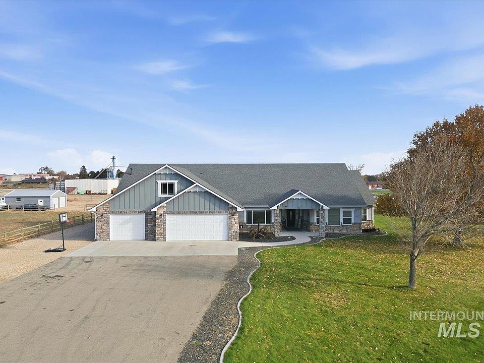 Discover small-town charm in Melba, Idaho, a welcoming rural community surrounded by breathtaking views of the Owyhee Mountains and Boise Range. This custom-built home sits in a quiet subdivision of small-acreage properties, each offering space, privacy, and country freedom. Enjoy an open, split-bedroom floor plan with vaulted ceilings, a spacious bonus room with wet bar, and a cozy rock fireplace. Recent upgrades include new roof (2022), HVAC (2022), pellet stove (2024), interior paint, LVP flooring and carpet (2025). The kitchen and baths feature granite counters and tile flooring. Outside, relax in the east-facing backyard with shade, no back neighbors, garden space, and an above-ground pool. Plenty of parking for trailers, toys, and livestock, plus a finished, insulated garage and fenced area for horses or cattle. Experience peaceful country living just minutes from town—your ideal Idaho lifestyle awaits.