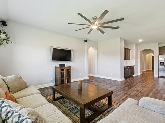 3 car garage! Former Model Home on Premium Corner Lot in Fate, Texas! Welcome to this beautifully maintained 4-bedroom, 2-bathroom former model home, ideally situated on an expansive corner lot with no homes behind or on one side—offering rare privacy and tranquil greenspace views from the front yard. Step inside through elegant arched entryways into a light-filled home featuring easy-to-maintain flooring in the main living areas and plush carpet in the bedrooms for added comfort. Fresh paint throughout gives the home a crisp, modern feel, while ceiling fans in every room and surround sound wiring in the living area add thoughtful upgrades for everyday living and entertaining.The heart of the home boasts an open layout perfect for gatherings, Kitchen features granite, gas cooktop, a walk in pantry and dual dining areas. The spacious primary suite is a true retreat, complete with a luxurious walk-in closet, dual vanities, and a tile surround shower. Enjoy low-maintenance living with a brick back fence maintained by the HOA, plus mature landscaping that adds curb appeal. The enormous, level backyard is a blank canvas ready for your dream outdoor oasis—plenty of room for a pool, garden, or custom landscaping! A decked attic offers bonus storage space, and the rare 3-car garage provides room for all your tools, toys, or hobbies.The community features resort-style pools, a fitness center, and a stunning clubhouse, and you’re just feet away from a top-rated Rockwall ISD school. With abundant natural light, this home is perfect for indoor plant lovers and anyone seeking a bright, cheerful space to call home. Don't miss this rare opportunity—homes like this don’t come around often!