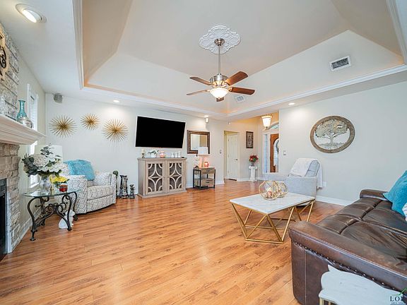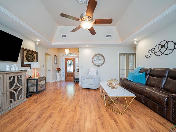 This custom built 4-bedroom, 2-bath home blends timeless character with a relaxed East Texas lifestyle. The single-level layout features a generous living area perfect for entertaining, and a cozy brick fireplace as a warm centerpiece. The master bedroom serves as a peaceful haven, opening directly onto a large covered patio where you can relax throughout the year. Master bathroom presents a floor-to-ceiling marble-tiled shower for relaxation and has separate sinks. The additional bedrooms offer versatile spaces for family or guests, and the home office with built-in desk in closet or could serve as a fourth bedroom. With its intermediate complexity in design and creative touches throughout, this house strikes the perfect balance between functionality and style. For those who cherish the kitchen as a gathering spot, this space will not disappoint. It is equipped with beautiful cabinetry, corian countertops, tiled backsplash, modern appliances, free standing double-oven, dishwasher, built in microwave, under cabinet lighting, and the bar provides additional seating. Laminate flooring, tile, and carpet throughout the home, and a new roof and gutters were replaced a year ago. In the event of an outage, you can quickly and safely connect a portable generator to power key household systems. This smart upgrade provides convenience and protection, setting this home apart with a valuable and reliable feature. A covered patio extending your living space into the peaceful outdoors. The versatile backyard shop with an overhead door provides a quiet and private retreat for tackling DIY projects, pursuing hobbies, or simply getting work done away from the main house. Just minutes from the premier Tempest Golf Course offers an unmatched combination of amenities, including championship golf, and an active clubhouse with fine dining, and social events.