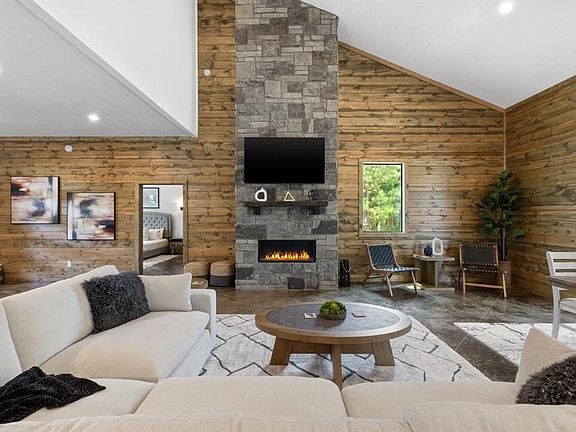Step inside to a spacious open-concept floor plan that seamlessly blends the living, dining, and kitchen areas. Enjoy breathtaking views from every room. The living room features a beautiful stone fireplace, while the dining area provides ample space for meals and gathering. The chef’s kitchen is fully equipped with stainless steel appliances, quartz countertops, generous cabinetry, and a huge island perfect for meal prep and extra seating.