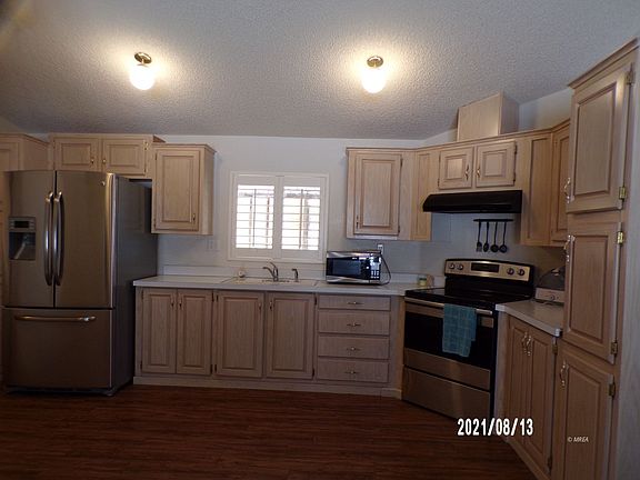 Manufactured home in the Hacienda Estates. Three bedrooms with nice wood look laminate flooring and carpet in the bedrooms. Open concept kitchen and living room. Beautiful stainless refrigerator. Kitchen stove 6 months old. Sink, toilet and cabinet in the guest bath replaced 6 months ago. Roof and rain gutter installed 18 months ago. Large back yard. Community pool and club house. Must see to appreciate.