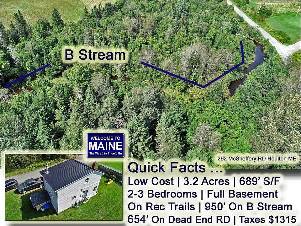 Package Real Estate Sale, Get A Home, 3.2 Acres Of Maine Land On The Waterfront!! Yes, Borders 'B' Stream For 950' And The McSheffery Road For 654'! Technically, The 2-3 Bedroom Home Is 292 McSheffery RD, The Extra Lot With Stream Frontage, Drilled Well, Septic Is 302 McSheffery RD! McSheffery RD Is Dead End Quiet! Welcome To Aroostook County. Video. Home Is Vinyl Sided, Metal Roof, Has Insulated Vinyl Windows. Tile Counter Top In The Modern Kitchen! Full Bath On 1st Floor With Tub & Shower. Wood Floors, Cedar And Pine Tongue N Groove Native Woodwork Through Out! Deep Cellar Is Full, Concrete Walls, Outside Entrance. Handy To The Rec Trails? Right At Your Door Step! Wildlife, Water, Privacy, Four Seasons Recreation. Low Cost Enought To Use As 'Your Camp Uptah Maine'. Or Starting Out, Why Keep Renting When You Can Own, Build Equity! Retirement Home, Works For That Need Too! Call, Email, Text, Let's Tour This Property Package In Houlton Maine! Country Living, Want Some?