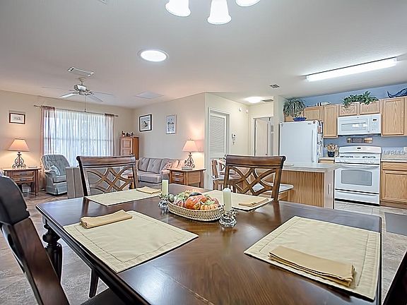 This Amarillo is so nicely maintained and on such a beautiful street. It is an open floor plan with zoned bedrooms. Carpet only in the bedroom 2 and 3. Lovely tile and luxury vinyl plank in the living, dining, and master bedroom. The laundry and garage is loaded with extra storage cabinets. Home has whole house filtration system and the garage has an extra refrigerator and separate freezer. The refrigerator in the kitchen is 3 years old and the microwave is 2 years old. This home is has a new roof a week ago with a transferable warranty. Home has a enclosed lanai and a 14 x 15 birdcage off of the lanai. Come see and you will want to live here!!!! $1393.70 Annual Bond Payment, $502.72 Annual bond maintenance, $16,474.71 Bond balance.