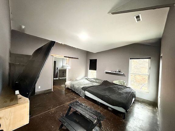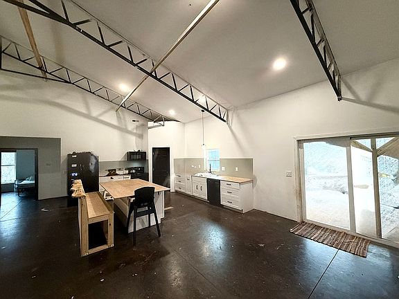 Come see this 2024 Barndominuim with vaulted ceilings and open floor plan including 4 large bedrooms and 2 full bathrooms! Nestled in the middle of 7.8 acres of wooded sloping property with slight mountain views and a gorgeous creek. So much space and privacy with a long gravel driveway partially shared at the road entrance by two great neighbors! Owners are in the process of finishing trim and paint and final touches but are willing to sell as-in at a slightly lower price point. Please come tour this one-of-a-kind beauty in person!