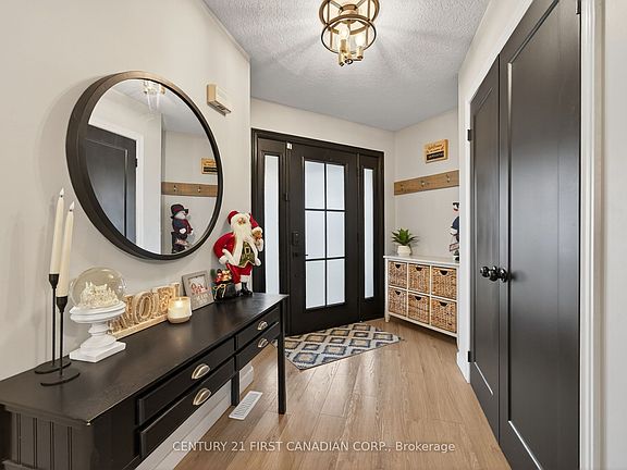 Welcome to this beautifully updated bungalow nestled in Strathroy's sought-after North end. Thoughtfully modernized from top to bottom, this home offers exceptional style, comfort, and function both inside and out. Step inside to find to find updated doors and hardware, new light fixtures, and a warm, contemporary aesthetic throughout. The spacious main floor features 3 generous bedrooms, including a stunning primary suite complete with a tray ceiling, custom walk-in closet, and an updated ensuite bathroom for a truly elevated retreat. The heart of the home is the updated kitchen, showcasing quartz countertops, updated cabinetry, and a seamless flow into the dining and living areas. A striking feature wall with fireplace and acoustic paneling creates the perfect focal point for cozy evenings or entertaining guests. Convenience is key with a new stackable washer and dryer in the laundry room located on the main level. The fully finished basement extends your living space with a large recreation area, an additional bedroom and a full bathroom - ideal for guests, teens, or multigenerational living. Step outside to your private backyard oasis featuring an in-ground saltwater pool, new heater, and stamped concrete surround - perfect for summer relaxation, The oversized heated garage provides ample room for larger vehicles, hobbies or storage. This move-in-ready bungalow checks all the boxes: updated, stylish, and located in one of Strathroy's most desirable neighbourhoods. Don't miss your chance to call this exceptional property home.