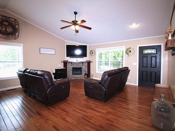 Beautiful Craftsman style home on nearly 4 acres just outside city limits. Three bedrooms 2 full bath hardwood and tile throughout, gas fireplace and all appliances. Large master bedroom with walk in tile shower. Also has an unfinished 400 sq foot bonus room above the garage can be a 4th bedroom or man cave. Outside features include new roof (2020), large parking area for several cars or toys, large outbuilding, above ground pool w/deck, nice Lifetime playset, trampoline, and 900 sq foot mostly covered back deck. All this situated on nearly 4 acres with breathtaking views. So many more features not listed. Must see to appreciate.