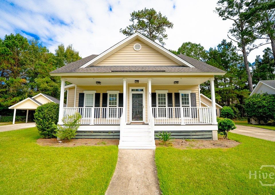 Welcome Home to 292 Vining Way! This charming two story home in Turtle Hill is perfectly situated in the heart of Richmond Hill just minutes from restaurants, grocery stores, and I95. Featuring 1,905 square feet of freshly painted living space, this four bedroom, two and a half bath home offers brand new carpet, a new refrigerator, and a new stove. The open floor plan includes a spacious living room with a ventless gas fireplace and mantle, and a kitchen with a center island, two pantry areas, and a bright breakfast space overlooking the screened in porch and fenced backyard. The primary suite on the main level features a walk in closet, dual vanities, and a newly tiled walk in shower. Upstairs are three additional bedrooms, each with walk in closets and a full bath. Enjoy extras like a separate laundry room with a sink, a one car carport, and a detached storage room. A perfect blend of comfort, function, and charm in a desirable Richmond Hill community.