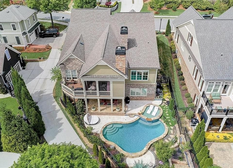Small town life with big city attractions. Welcome to Walnut Grove. This sneaky hotspot is walking distance to the booming Marietta Square. Experience the perfect blend of convenience, luxury, and security in this charming community. This gorgeous custom built & designed home is one of only four original Mark Kirk homes in the subdivision, featuring a timeless four-sided brick exterior with Board & Batten accents and creative modern architecture. This property is a true sanctuary that features a resort style saltwater pool, native flower plantings and trees throughout. Private outdoor covered porch with views to the backyard oasis. Chefs kitchen with massive island, solid wood cabinets, copper sink, easy-close drawers, walk in pantry, and mudroom storage provide modern convenience. While the updated lighting, custom built-in fridge, and beverage cooler add a touch of elegance. The owners suite and large secondary bedrooms are perfect for families. Terrace level finished to the same quality as main floor with kitchenette which includes a full-size refrigerator, Home theatre, billiards area, exercise room, carpenter's wood shop, unfinished storage area, safe room, and an additional guest suite with full bathroom. Bonus features: High end Trane HVAC units, custom designed baby pool/lounging section, 3/4 inch thick Natural Dark walnut hardwood floors, coffered ceilings, and fireside covered porch. If you like old time charm, friendly people, nature, local shops, farmers markets, live music, art festivals, and chef owned restaurants and bars this is the place for you.