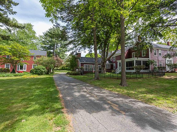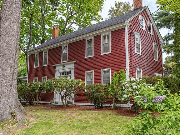 NEW PRICE!!!! This picturesque New England colonial has numerous unique historical features that could not be replicated today. This amazing home would be perfect for multiple generation use. The town blacksmith built this home in 1806 and features include hand hewn beams, wide original wood floors, and forged nails. The location allows for walk to schools, parks, restaurants, or the town library on sidewalks from this beautifully landscaped .86-acre property. Main house features two kitchens, four bedrooms, three sitting rooms, three bathrooms, and a great room with large fireplace. Enjoy coffee on the 19x12 screened in porch or the adorable back porch with hardscape patio. Substantial updates include newer roofs, new boiler, remodeled front kitchen, and updated electrical. Main house also has first floor laundry and plenty of storage in attic or dry basement. Property includes a 3-car garage and attached finished auxiliary building. The auxiliary building was built in 2002 and features a large living room with vaulted ceilings and propane fireplace, large bedroom, and 1.5 baths. This addition also has ample storage in attic above. The grounds are meticulously landscaped with flowering trees, perennials, and large raspberry patch. Possibilities are endless for this compound that is a short drive, or 1.4 mile walk to the beach & close to shopping & highways. Showings by appointment only. Please call, text, or email to setup showing. Offers due 6pm Tuesday 8/16