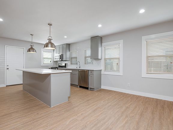 Large islandModern sleek designBeautiful finishesStainless steel appliancesAmple cabinet spaceRecessed lightingTandem space driveway