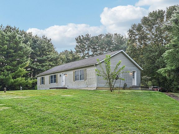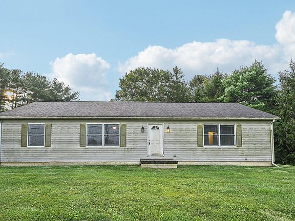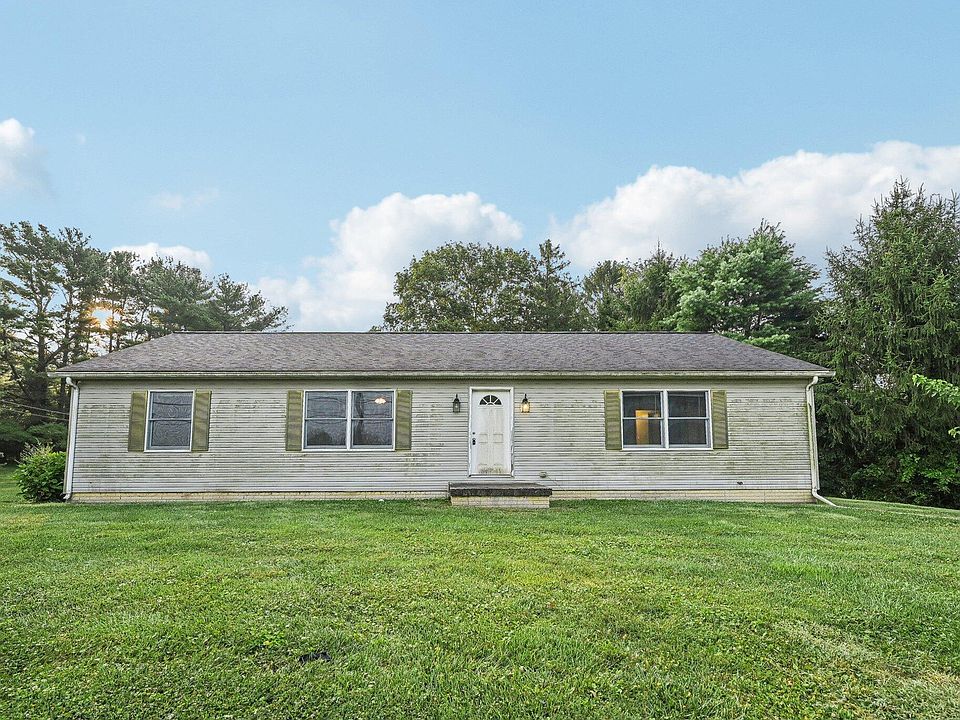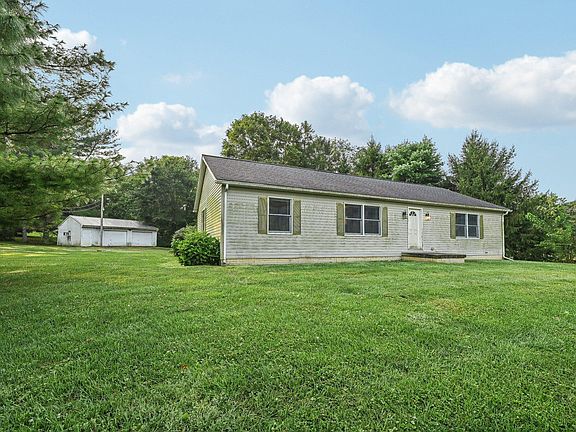 This is your opportunity to own a ranch home on a full basement w/3 beautiful acres in the Licking Valley school district! All rooms are spacious plus a main floor laundry/mud room. Large covered rear patio overlooks back yard. Basement is awaiting your finishing and has an egress window for your safety. A large 3+ detached garage/workshop awaits! Home needs cosmetic updates and some work... sold 'as is' to settle estate.