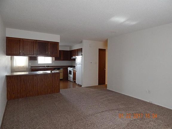 Large 2 bedroom, 1 bath unit in nice side-by-side complex. Apartment home consists of large living room with plush new carpet, country eat-in kitchen with stove, refrigerator, and dishwasher, 2 bedrooms and full bath. Other features include; off-street parking, air- conditioning via roof-top swamp cooler, front and rear entrances, new carpet and paint, main floor living with no one above or below you. 1 year