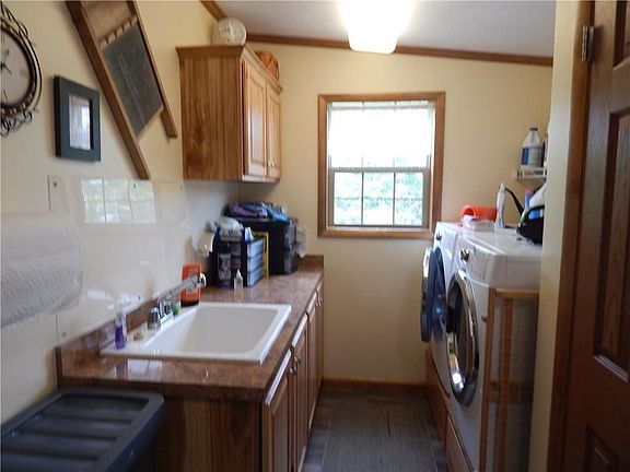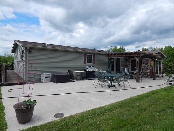 Well designed country home on over 7 acres of beautiful land. Plenty of storage space through out. Open floor plan with cathedral ceiling makes it feel comfortably large. Ceramic floor in entry/mud room. Vinyl plank floor in hallway and kitchen/dining areas. Outside there is a deck on the west side and a patio with a pergola on the east side. 3 car garage and 2 sheds for all the toys. Portable generator. Extensive landscaping with apple and pear trees along with berry bushes and large garden area. There are also camper hookups. This property has it all! More land available.