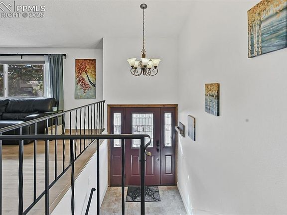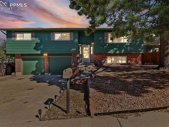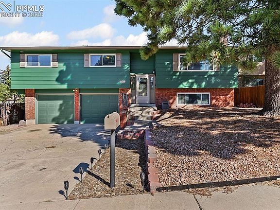 Wonderful home located on a cul-de-sac with amazing Pikes Peak Views from the deck! NEW Class 4 Impact-Resistant Roof! RV Parking! New Gutters! New Exterior Paint! This home has been nicely updated with light wood laminate flooring throughout almost entire upper level, carpet in the bedrooms freshly cleaned, all new updated baseboards and paint, and a stunning kitchen, upgraded with large island, pendant lighting, granite countertops, stick-on tile backsplash and new, dark stainless-steel appliances with an upgraded oven with air fryer built in! The backyard is completely fenced and landscaped with a two-tiered, IPE solid wood deck with lovely mountain views! Central Air Conditioning! Attic Fan! Additional/RV parking off the driveway! Auto Sprinkler System! Washer and Dryer included! Wood Burning Fireplace with Half-Wall Brick Mantle! Newer windows throughout! Smart Cameras, Ring Doorbell, Smart Thermostat and Smart Front Lock included! Come and see this beautiful home today!