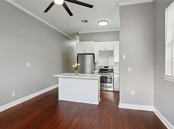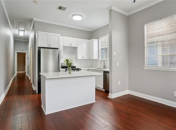 Cozy two-bedroom, one-bath home in the Irish Channel, available immediately. Enjoy a recently updated kitchen and bath along with hardwood floors, high ceilings, central AC & heat and ceiling fans throughout. The functional layout features two private bedrooms and an eat-in kitchen featuring quartz countertops and stainless-steel appliances. 12 mos. lease minimum, pets considered on a case-by-case basis.