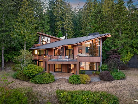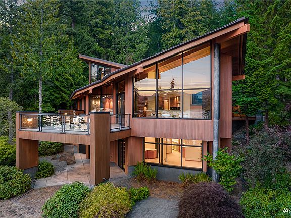 An iconic architectural statement by renown Chesmore|Buck Architecture of Kirkland. Sited on 2.5 private acres with over 200 feet of no bank waterfront on the shore of Lake Whatcom. This modern sanctuary offers the most spectacular South facing views the lake has to offer. Bold, disciplined lines connect the structure with walls of glass blurring the lines of indoor and out, creating a unique lifestyle at one with nature. Truly unrivaled build quality, stunning finishes and exceptional living and entertaining spaces at every turn. Enjoy lake living at its best with a private dock and rare boat house with boat lift. From a page in Dwell magazine and the first time on the market since it was constructed.