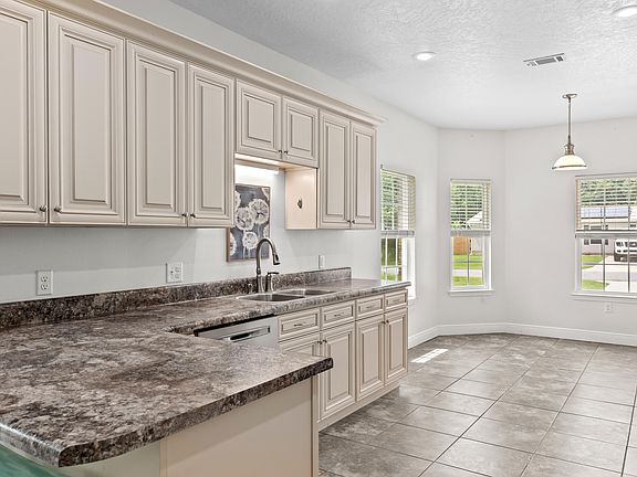 USDA ELIGIBLE = $0 DOWNPAYMENT! Ask me how you can OWN this adorable home with bringing LESS to the closing table than you would entering into a new rental agreement. Situated on a quiet street, this home features 9 foot ceilings, engineered hardwood floors in the living room and 14inch tile in the kitchen, dining, and bathrooms. Custom, soft-close cabinets in the kitchen and bathrooms offer plenty of storage. Bay windows, in the dining space off the kitchen, and the double French doors in the living room invite in lots of natural light. French doors invite you onto the covered back patio and large fenced in backyard. The home's split floorplan separates the bedrooms; the primary bedroom sits just off the living space, with a large walk in closet, en suite bathroom featuring custom, soft-close cabinets, double vanity sinks, shower, and separate water closet.. The linen closet offers plenty of storage. The other two spacious guest rooms are down their own hallway, past the kitchen and living room. The guest rooms share a hallway bathroom with shower/tub combination and single vanity sink. The mudroom/laundry room is adjacent to the guest hallway with washer and dryer hook ups and utilities storage. The laundry room leads out into the full size double car garage. The oversized driveway offers plenty of parking with enough room for a boat or camper. Freshly painted front entryway and porch swing welcomes you home. The outdoor patio furnishings and any existing furniture may convey with the sale of the property. Welcome, take a look, and fall in love with this well kept home. Buyer to verify all deemed to be important.
