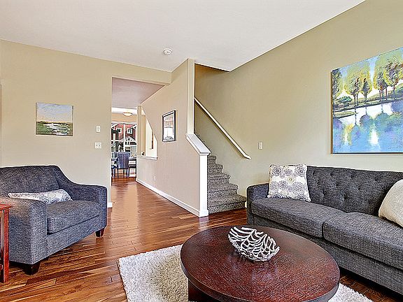 Beautiful 3 bedroom 2-1/2 bath townhome. Enter into living area w/cozy electric fireplace. Gourmet kitchen, slab granite & island, SS appliances, dining area & HUGE patio, perfect for entertaining. Large windows, beautiful hardwoods throughout. Media & storage room downstairs w/ entry to the 2 car attached garage. All 3 bedrooms are upstairs next to laundry rm. Master bedroom has en suite bath & walk-in closet. Features smart home switches throughout. Lovely parks, community & great neighbors.