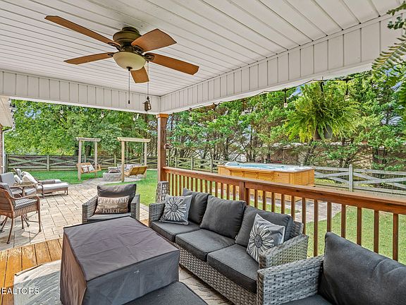 This spectacular home offers the perfect blend of comfort, style, and outdoor living. Sitting on just under one acre, it welcomes you with a covered front porch where you can take in the mountain views. Out back, a covered deck overlooks the mostly level, fenced, and partially shaded backyard. An extensive custom brick patio leads to a brick firepit with swings on both sides — the ideal gathering spot for year-round relaxation. A swim spa adds to the backyard tranquility, creating a private oasis you'll never want to leave. New 30-year dimensional shingles installed June of this year. Seller is providing buyer with a 1-Year Old Republic Home Protection Platinum Coverage for buyers' peace of mind.