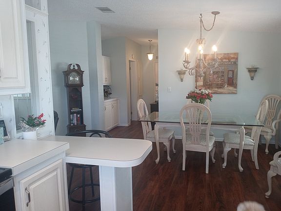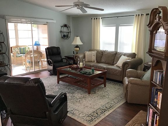 This home is a MUST SEE. This well-maintained home comes furnished and ready to move in. The large living room opens to the dining area. Vinyl plank floors and new baseboards throughout LR, DR, kitchen and hall. Patio doors open off living room to the gorgeous porcelain tiled (10 x 13.5 ) lanai where you can enjoy your coffee and watch the sunrise. The spacious kitchen has stainless steel appliances, lots of storage and includes a butler pantry. Windows in living room and bedrooms have been upgraded to double pane. Large primary bedroom has king bed and wall to wall walkthrough closet plus bathroom with walk-in shower. The home features a new roof in 2023, new AC in 2020, new hot water tank in 2024, and vapor barrier was inspected and repaired in 2023. Motivated Seller.