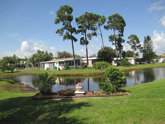 Don t miss this opportunity to own a stunning 1989 Suncoast home in the desirable Blue Heron Pines community! With 1,120 sq. ft. of living space, this 2-bedroom, 2-bath home offers an open floor plan and breathtaking water views. Enjoy your morning coffee or evening sunsets from the expansive 20' x 24' lanai with an insulated roof, perfectly positioned to overlook the peaceful water. Features include: Samsung stainless steel appliances in the kitchen, Goodman air conditioner for year-round comfort, Rubber roof for durability and low maintenance, Honeywell thermostat/humidistat for energy efficiency. Located just steps away from the heated pool with sundeck, mail kiosk, and the community center/clubhouse, this home offers both convenience and vibrant community living. Whether you're seeking a full-time residence or a seasonal retreat, this home checks all the boxes. Come experience the lifestyle at Blue Heron Pines active 55+ living at its best!