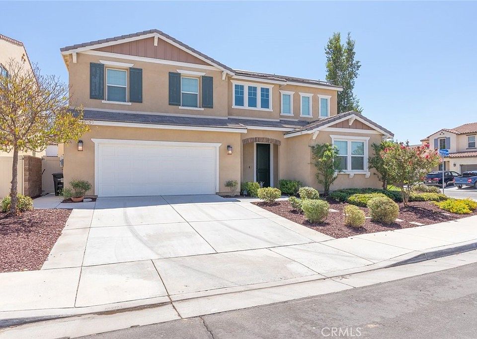Nestled on an ample corner lot within the highly sought-after Summerly community of Lake Elsinore, this stunning home offers the perfect blend of elegance, comfort, and functionality. From the moment you arrive, soaring ceilings and an abundance of natural light set the tone for the bright and open floor plan that lies ahead. Step inside to find gorgeous wood-like laminate flooring flowing throughout the main living areas, creating a warm and inviting atmosphere. The open-concept kitchen is a true delight, featuring rich dark wood cabinetry, sleek stainless steel appliances, a cozy breakfast nook, and generous counter space—ideal for both daily living and entertaining. The kitchen seamlessly opens to the expansive family room, making it the heart of the home. This versatile floor plan also includes a full bedroom and full bathroom downstairs, perfect for guests or multi-generational living, as well as a bonus room that can serve as a craft space, home office, or imaginative playroom. Upstairs, the spacious master suite is a private retreat complete with a large walk-in closet and a beautifully appointed en-suite bathroom. Another bonus room on the second level offers endless possibilities—create a home theater, game room, or anything your lifestyle calls for. Step outside to your own backyard paradise where a sparkling pool and spa await, alongside a covered California room complete with a cozy fireplace—perfect for year-round entertaining. Plus, with a paid-off 39 solar panel system and backup battery, you can enjoy significant savings on electricity while living sustainably. Don’t miss your chance to make this exceptional Summerly residence your very own—schedule a private showing today and experience the lifestyle you’ve been dreaming of!