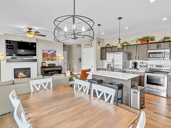 Experience the tranquility of golf course living in this zero-entry duplex located along Bos Landen Golf Course in Pella. Built in 2021, this 3-bedroom, 2-bath home offers 1,552 sq. ft. of thoughtfully designed living space. The open floor plan seamlessly connects the kitchen, dining, and living areas—perfect for everyday living and entertaining. Durable hard-surface flooring runs throughout for easy maintenance and a clean, modern look. The spacious primary suite features a walk-in closet and private 3/4 bath, while two additional bedrooms provide flexibility for guests or a home office. A temperature-controlled two-car garage ensures year-round comfort, and the patio invites you to unwind while taking in the peaceful green views.