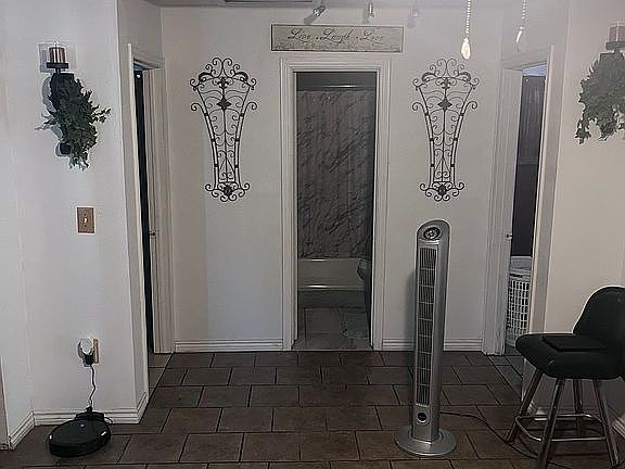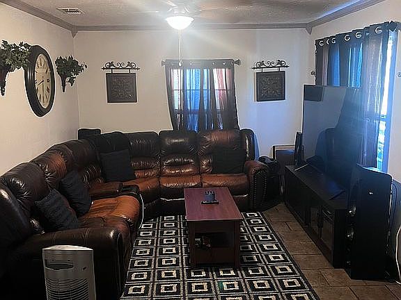 Tile flooring throughout houseLarge shady pecan treeGrowing peach treeNice size yard