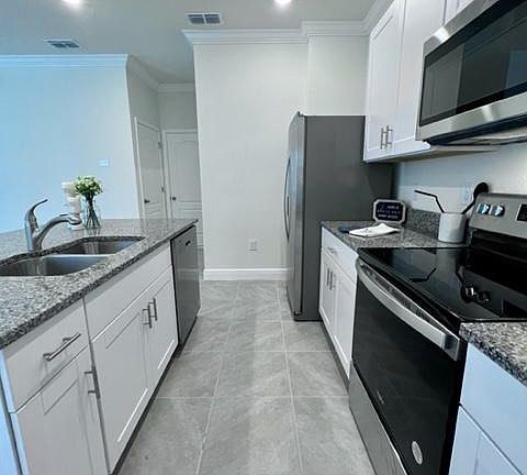 Built in 2023, this is a newer constructed 3/2.5 smart home town home located in the highly desired Venetian Bay Community-The Palms. Home features smart home technology, upgraded 5-inch baseboards and crown molding, tile/carpet, full stainless steel appliance package in kitchen, granite counter tops in kitchen and bathrooms, whirlpool washer and dryer in unit, central air and heat, automatic garage door for 2-car garage, epoxy painted garage floor, keyless entry, lawn care included, and additional parking and empty lot next door for more land space. Community Pool, Pickleball Courts, and clubhouse access available*. Conveniently located minutes from I-95, close to beaches, 22 minutes from Daytona International Speedway, 25 minutes from Halifax Hospital, 27 minutes from AdventHealth Daytona Beach, 24 minutes from Tanger Outlets, 20 minutes from Embry Riddle Aeronautical University, and shopping.