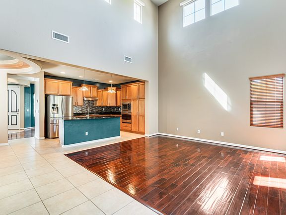 Custom arch pillars line this 4 bed, 3 and a half bath home on a huge corner. Soak in breathtaking mountain views from your patio. Very high vaulted ceilings create a dramatic entrance kitchen includes wrap around cabinets, large center island while opening into the living area. Gorgeous loft overlooking this space, use it for anything you wish! Relax in your spa-inspired master where you have french doors, dual sinks, separate tub, and walk-in shower. Enjoy your tropical oasis where you can soak in panoramic views of the mountain under the covered patio. Steps away from your front door you can cool off in the one of a kind community pool. Located near Skyline Regional Park, major freeways, restaurants, shopping and more. Schedule a showing today!