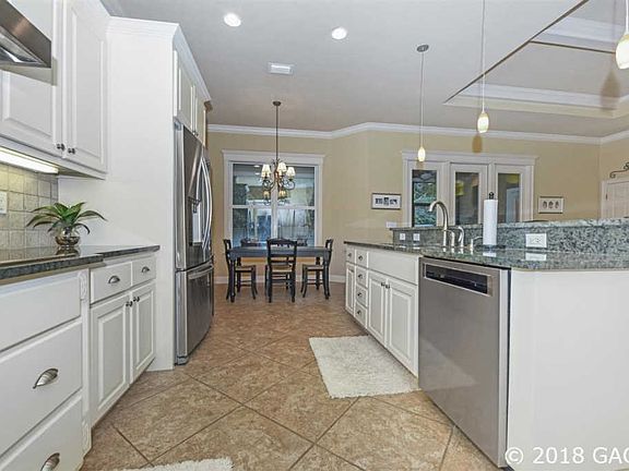 Within the desirable Haile Plantation, this lovely 4 bed, 3 bath home has it all: space, comfort, and plenty of upgrades. The foyer opens to a den and formal dining room and comes complete with plantation shutters for added charm. The open concept gourmet kitchen is equipped with 42" maple cabinets, granite countertops, and eat-in breakfast nook. The living room features built-ins and a cozy rustic fireplace. Walk-in closets and access to the screened lanai make the master suite feel like a luxurious retreat. With two additional bedrooms that share a jack-and-jill bath and separate guest room with a private bathroom, this home provides plenty of space for family and friends alike. Conveniently located near shops, restaurants, schools, and nature trails, this place is sure to fulfill your wish list.