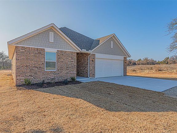 Fall in love with this affordable, shop-approved craftsman inspired home on a large lot, located in the quickly-growing community of Falcon Point in the Bethel school district, only about 30 minutes from OKC and Tinker AFB! The Hartford plan has both curbside appeal and an amazing use of space. Your new home has over 1500 sq ft of open design and beautiful flooring, a large kitchen, featuring GE appliances, lots of cabinetry and beautiful granite countertops spanning the length of the kitchen island. There is also a pantry with plenty of storage. The main bedroom has a connecting private bathroom with separate sinks and a spacious walk-in closet. The secondary bedrooms are on the other side of the home and separated by a second bathroom. And there is more storage in the attic above your two-car garage. Ready to unwind and start living your best life and enjoying sunrises and sunsets in a quiet and peaceful country neighborhood? Come by or call now to make an appointment to learn all about this beautiful community! **And ask about USDA (100% financing, zero down) eligibility!! This home qualifies for up to $10,000 down payment assistance AND an additional $10,000 in closing costs!!! (Downpayment assistance is for conventional loans only with 3% down payment with our preferred lender)!