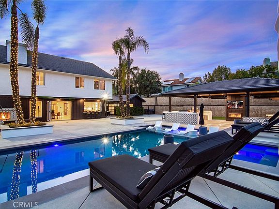 Step outside through the 9 accordion door to discover a backyard oasis reminiscent of a 5-star resort. Enjoy al fresco dining in the custom-built 32x20 cabana, complete with a LYNX outdoor kitchen featuring a 48 BBQ, griddle, and pizza oven. Take a dip in the resort-style pool and spa, gather around one of three fire features, or practice your putting on the 5-hole green. The backyard also features a whiffle ball field lined with eight mature fruit trees, offering endless opportunities for outdoor recreation.