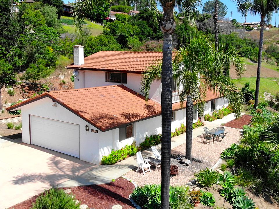 RETRO lovers check out this unique property with endless potential! You will love the gorgeous private views of the San Pasqual Valley the moment of arrival! Featuring 4 bedroom 2 bath, 4 car garage perfect for a workshop and rooftop for sunbathing and lounging. Your new home is very private and surrounded with exotic vegetation 11 mature palm trees and lush greenery. Needs a little upgrading but is worth every peaceful sunset. New AC unit and flooring upstairs with wet bar. Experience the view today!