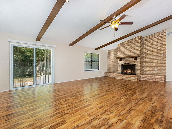 Wood-burning brick fireplaceAbundant natural lightStainless steel appliancesDesignated dining spaceGranite countertopsOversized back patioSliding glass doors