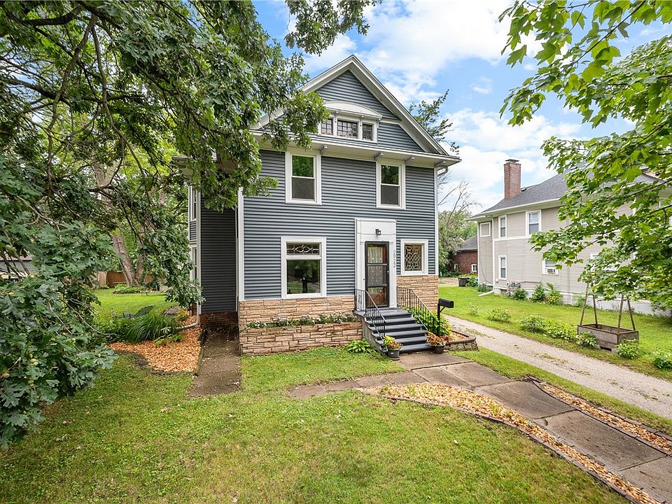 Well Taken Care of, One of a Kind, Two Story, w/Beautiful Curb Appeal! This home has beautiful original woodwork throughout, an imaginable amount of built-ins and unique stained glass and leaded windows letting in tons of natural lighting. Main level features family room w/fireplace, living room, eat-in kitchen, formal dining room, dining area and a full bath. Upstairs features three generous-sized bedrooms, a fourth non-conforming bedroom that could be used as an office space or playroom, full bathroom and the laundry room. The third-floor attic offers more space for finish and great storage. The oversized, detached two-car garage is perfect for keeping your vehicles safe from the elements and there is an interior exterior chicken coop attached to it. Updates include new siding, newer windows, newer roof and furnace and air conditioner new December 2022. Conveniently located in the great Drake University Neighborhood and close to all amenities of daily living. Make this your next Home