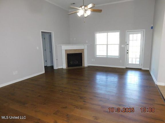 Nice Three Bedroom, Two Bath, Bonus Room Upstairs, Formal Dining Room has circle head window, ceramic tile flooring, kitchen has custom cabinets with granite counter tops, Island with snack bar, pantry, ceramic tile flooring, Great room has wood flooring, ceiling fan, corner fireplace with gas logs, mantle and tile surround, Primary Bedroom is spacious with a door to the patio, ceiling fan, Primary Bathroom has jetted tub, separate shower, there are two more roomy bedrooms, hall bathroom and laundry room has tile floor, three car garage, covered patio, privacy wood fence