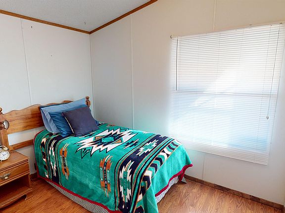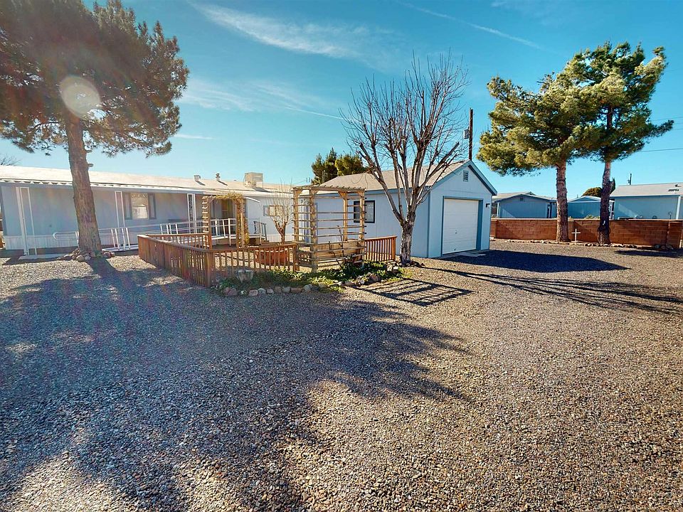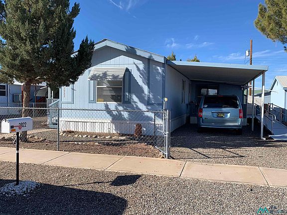 Single wide manufactured home built in 1999 Silver Creek 16x60 with approximately 960 SQFT, not considered Real Property.  This well maintained home offers 2 bedrooms, 2 baths, with an additional room for an office. The property is fully fenced with chain link with two gate entrances, gravel very low maintenance requirement, RV hook up w sewer, water and electric, mature trees, metal carport, one car garage detached with concrete slab, electric and manual garage door, central heating, evaporative cooler (not in working condition), 1 window unit for cooling.  City water & sewer, and NM Gas.  There are two additional sheds one has electric, and the other shed does not have electric both storage shed have shelving in them.  Property is in a 55+ community, active HOA, and a yearly fee of $45.00 per year.  Easy access to all the local businesses and hospital.  Easy access to I-10, Las Cruces, Silver City, Lordsburg, and El Paso airport.  This property will only be able to be sold on a cash