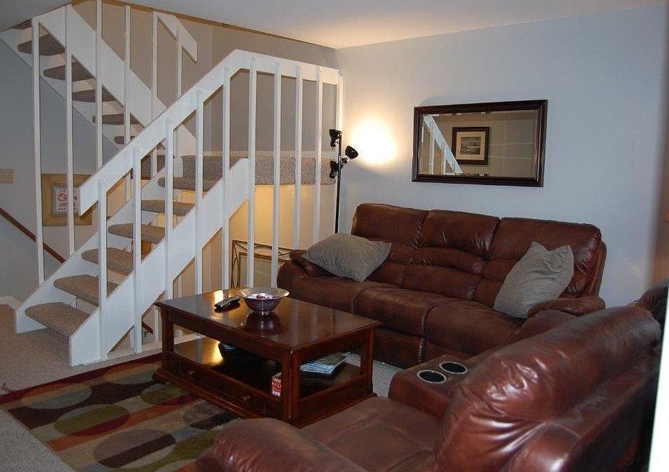 -3 bedrooms (2 upstairs, 1 bedroom in the basement) -1.5 bath upstairs, .5 bath on main floor and 1 full bathroom in basement. -Deck on the back of the apartment. -Washer and dryer located in the downstairs finished basement -Community pool located across the street from the apartment. *Working on getting photos of the upstairs bedrooms and bathrooms. -1 year lease minimum. -Renter pays utilities -No smoking.