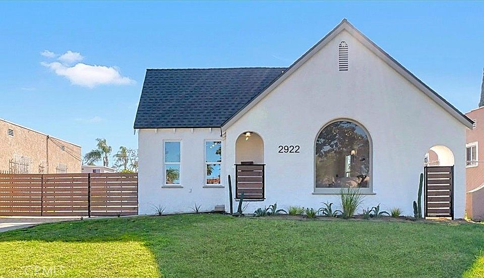Welcome to 2922 W. 77th St, a charming, reimagined stunner with a modern Tudor meets Spanish vibe. Located a highly sought after North Inglewood neighborhood with close proximity to SoFi Stadium, The Forum, amazing shopping and dining, this property is not to be missed! Upon arrival, you’ll immediately take notice of this homes’ undeniably enviable curb appeal and character. After making your way up the elongated driveway & new patio paver walkway, past the elegant gates and porch railings, you’ll enter through the front door and find yourself in the oversized family room highlighted by a gorgeous arched bay window, barreled ceiling and fabulous decorative fireplace. Pass through the formal dining room to the immaculately designed kitchen, featuring new white shaker style cabinetry, Calcutta quartz countertops, stunning patterned tile backsplash and a top of the line stainless steel appliance package. Bright and generously sized, both bedrooms offer ample space with the primary featuring a capacious walk-in closet. Adding to the beautiful aesthetic of the bathroom is the stylish new tile flooring and 60” double vanity. Love to entertain? The expansive, newly landscaped backyard is perfect for all of your intimate gatherings, and also provides ADU potential making way for possible future rental income! Additional luxuries and conveniences include: oversized 2-car detached garage, new roof, new HVAC featuring NEST smart thermostat, indoor washer and dryer hookups, gorgeous finishes and fixtures throughout and so much more! Don’t let this one slip away. Schedule your showing today!