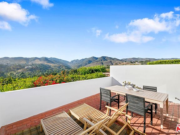 Newly updated ocean-view townhome with coveted Riviera III beach rights to Little Dume, the most private and idyllic sandy beach in all of Malibu! Situated in the outermost row of a gated complex, this rare property offers a gateway to the quintessential coastal lifestyle with sweeping mountain and ocean views. Inside, the home is flooded with natural light by an abundance of large skylights and offers a casual layout with exceptionally large square footage. The living room features high beamed ceilings, oversized windows with mountain views, and an Italian fireplace. The kitchen flows to a dining area and out onto a private sun-drenched patio, with endless views from Zuma to Buzzards Roost and beyond. Upstairs, the primary suite offers soaring ceilings with a private balcony, en-suite bathroom, and updated walk-in closet. The second bedroom features peaceful views and there is an additional full bathroom, entry level powder room, and a large loft that could be used as an office, media room, or converted to a third bedroom. An attached two-car garage offers ample storage and a washer/dryer. Point Dume is one of Malibu's most iconic locations, and this townhome is ideally situated next to the shops and restaurants at Point Dume Village. Take your golf cart to Little Dume and enjoy the finest beach that Malibu has to offer, with sandy coves and gentle waves sheltered from the afternoon wind making it a private paradise.
