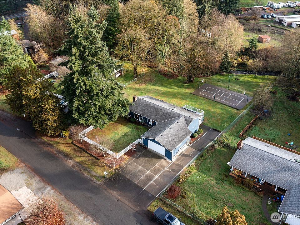 Welcome home to this warm and cozy, waterfront home on Jenkins Creek, offering the perfect blend of comfort, charm, and creekside tranquility. The expansive deck with a retractable awning overlooks beautiful landscaping, firepit, sports court, and creek. The lighted sports court is ideal for basketball and pickleball - perfect for active living. This rambler with a fully finished basement provides exceptional flexibility, ideal for multi-generational living or a potential basement rental. The basement is complete with its own access, kitchen, living room, dining room, bedroom, extra finished room and laundry room. Conveniently located close to shopping, dining, and commuting corridors, this home offers both serenity and accessibility.