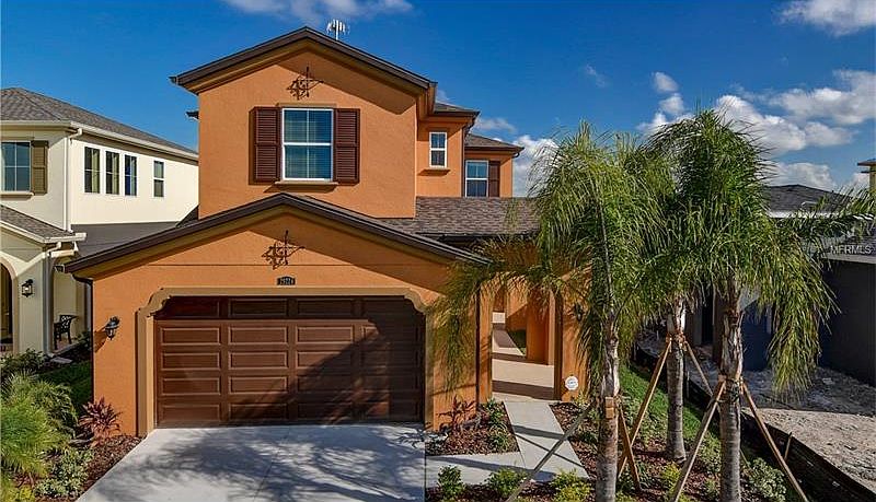 Gorgeous home with two story foyer at the entry that leads to the den and additional flex space of a loft. Nicely laid out plan with 3 bedrooms 3 Bathrooms and 2 car garage, his home boasts wonderful flexibility and living space. The architecture is accentuated by a beautiful portico side entry. A sliding glass door out to the large lanai from both the great room and casual dining, indoor and outdoor living are seamlessly integrated in this charming home.