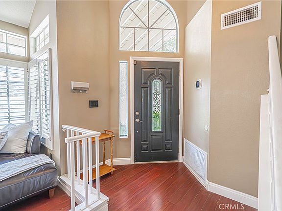 Welcome to this charming American Beauty Meadows Cul-De-Sac home on a large private lot. As you arrive, you are welcomed with a large front yard with beautiful mature trees. The home has a very private location with no neighbors on one side. When you step into the home, you will notice the open floor that leads into a warm and inviting living room and formal dining room. There are high vaulted ceilings and large windows that let in a lot of natural light. The wood-like laminate flooring and plantation shutters are found throughout the home. A cozy family room features a beautiful granite fireplace with a mantel and recessed lighting. The family room opens into the eating and kitchen areas. Kitchen features granite countertops with a beautiful tile backsplash, newer stainless steel appliances, recessed lighting, beautiful pendant lighting over the island, seating around the breakfast counter, and crown molding. There is a half bathroom downstairs with an updated vanity, electrical soffit, newer floors, newer light fixtures, and newer baseboards. Upstairs, you will find 3 spacious bedrooms. The primary bedroom features wood-like laminate floors, a vaulted ceiling, and large windows with plantation shutters. The primary bathroom has double sinks, wood frame mirrors, decorative lighting, and a tub/shower combination. The two additional rooms are good size, also with plantation shutters. The hallway has a nice-sized full bathroom. There have been many upgrades to this home that include, EV Car Charger, NEW HVAC, New water heater, copper repipe, recessed lighting in the family room and kitchen, newer interior doors and hardware, newer light fixtures throughout, newer baseboards, and so much more. Outside is your private oasis with a large backyard featuring an extended patio, pavers to create an outdoor living space, a storage shed on the side of the house, white vinyl fencing, string lights, and plenty of room to enjoy all your entertaining needs. American Beauty Meadows community amenities include a pool, spa, tennis court, front yard maintenance, and all common areas. Close to shopping at the newest shopping complex in the community, featuring Sprouts Market, Starbucks, Chipotle, and many other restaurants. Freeway access to the 14 is very close for your commute, and there are wonderful schools nearby, too. Call for a showing today!!