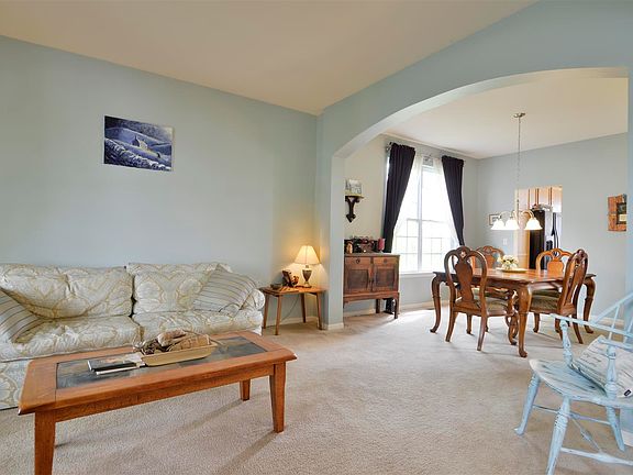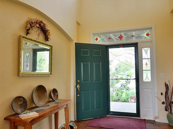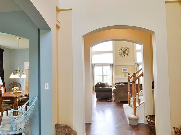 It’s love at first sight when you see this well-designed two-story in Fisher Farms with covered porch entry. From the two-story foyer with hardwood floor you see neutral décor and architectural features of arched openings, niches, transom windows and openings, soaring windows flanking the woodburning fireplace in the two-story family room, and gleaming woodwork on the staircase with newel posts. High ceilings and bright windows make the living room and dining room feel warm and welcoming. The eat-in kitchen is open to the family room and features hardwood flooring, planning desk, center island, and access to the deck. Throughout the main and upper level of this home you will find 6-panel doors, ceiling fans, vaulted ceilings, and a finished walk-out basement for additional living space. A very special feature on the upper level is the master suite with walk-in closet and double-door closet, luxury bath, and atrium door to a private balcony. This home offers convenience inside and out, as well as the perfect location near shopping, health and fitness facilities, the Metra and more!