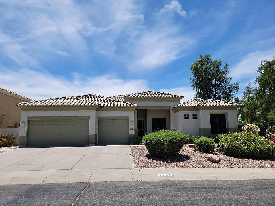 Vacant and move-in ready! Resort living in the newly upgraded single level house with sparkling fenced pool! Beautiful kitchen with granite counter and big island, stainless steel appliances including refrigerator! Wood floor in living room, new carpet in master bedroom and other rooms carpet only few years old, freshly painted exterior, newly surfaced pool deck! New efficient water heater. Ceiling fans in all rooms. Great and convenient location, only 1 mile to San Tan Village Mall and San Tan 202. Rent does not include pool or landscaping service. No eviction or felony history, no cat or big dog, verifiable monthly income above $9000. $3000 rent, 1.5% rental tax. $40 application fee. $3000 security deposit, $500 cleaning deposit, $300 pet fee per pet if applicable. $1500 earnest deposit needed to reserve the house for up to 3 weeks for approved application.