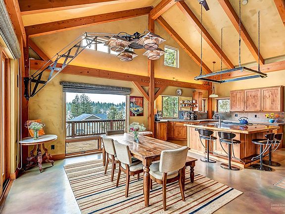 Extraordinary and unique 4 Bedroom 3 1/2 bath contemporary home conveniently situated on a .28 acre lot with Cascade mountain views on Bend's Westside. Constructed in 2004, this 3,663 sqft custom home exudes warmth and coziness with a combination of ICF and Timber Frame construction. Whimsical yet practical eco-minded design and materials throughout. Ultra-efficient radiant concrete floors and mini-splits combine with the extensive solar array for low energy costs. 2-car garage with extra storage.